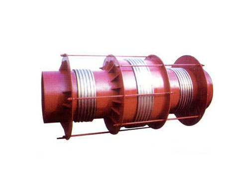 該膨脹節(jié)的兩端各有一個工作波紋管,中間有一個平衡波紋管,膨脹節(jié)通過受力構(gòu)件(大拉桿或舌管)來承受內(nèi)壓推力,因此管系只需中間固定支架。此類膨脹節(jié)只能吸收軸向位移。