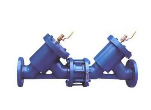 HS41X型防污隔斷閥為二個(gè)止回閥串聯(lián)而成,當(dāng)其中有一只密封破壞時(shí),另一只還起密封作用,防止回流。但二只止回閥密封同時(shí)破壞后,就失去了止回作用,其 性相對(duì)差些,工作原理較簡(jiǎn)單。